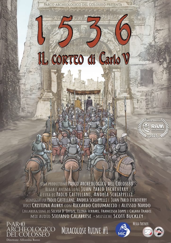1536: il corteo di Carlo V” è la prima puntata della serie di cortometraggi animati, dal titolo “Miracolose ruine”, dedicata alla narrazione di storie e vicende ambientate nei siti del Parco in epoche successive alla Roma imperiale.