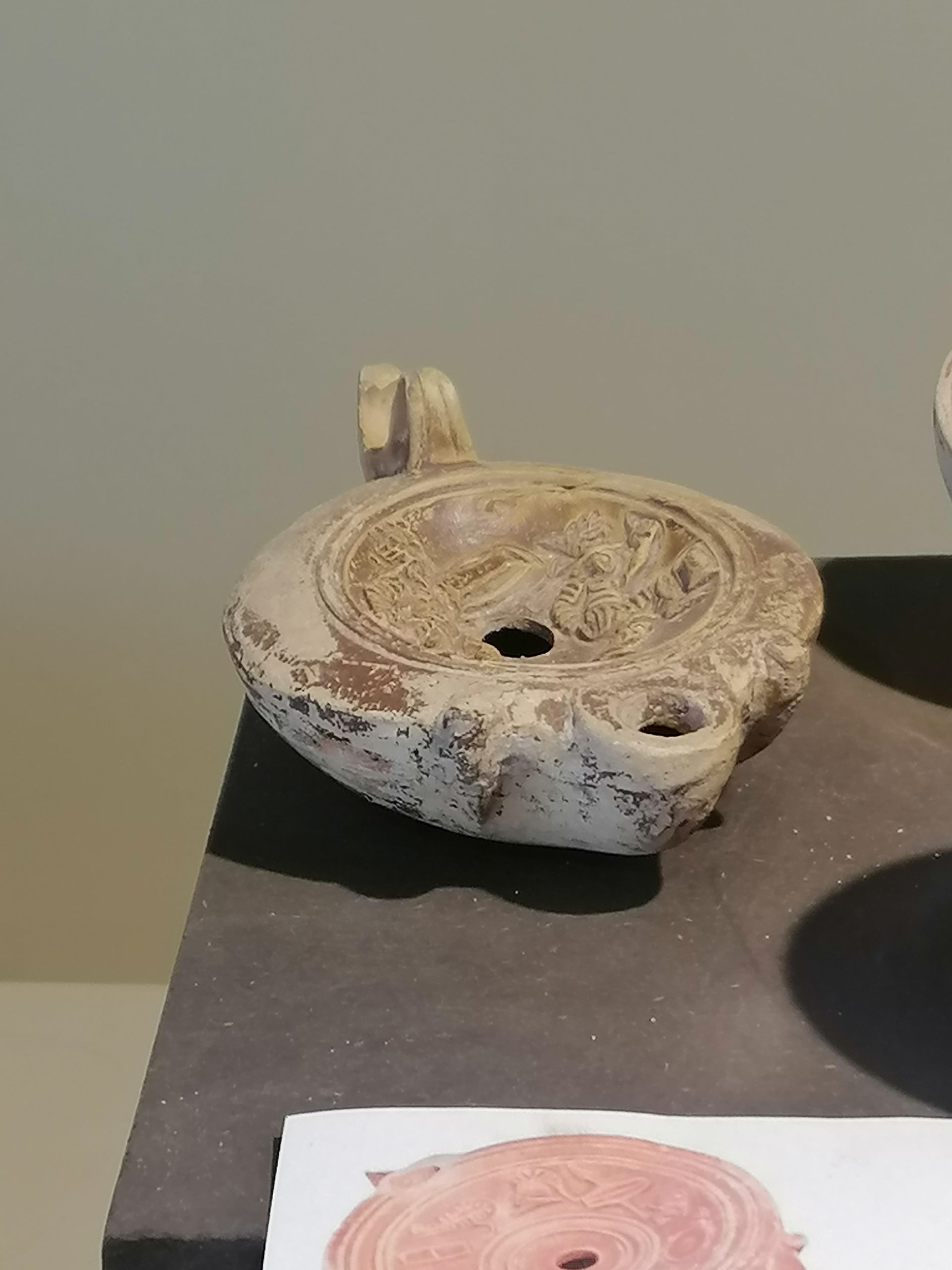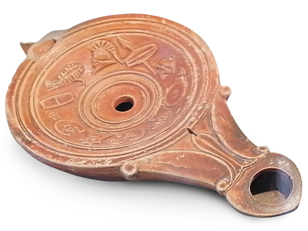 - CLAY OIL LAMP WITH FRIEZE OF WEAPONS Colosseum, permanent exhibition “The Colosseum tells its story”, 2nd level 1st century A.D. Parco archeologico del Colosseo