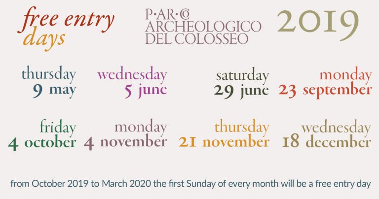 SUNDAY 7th DECEMBER 2025 the Parco archeologico del Colosseo adheres to the initiative domenicalmuseo with the following visiting options: Route Colosseum, Roman Forum, Palatine a single visit to the Colosseum, the Roman Forum and the Palatine Route Forum Pass to visit the Imperial Fora, the Roman Forum and the Palatine in a single visit Tickets can be... Read more »
