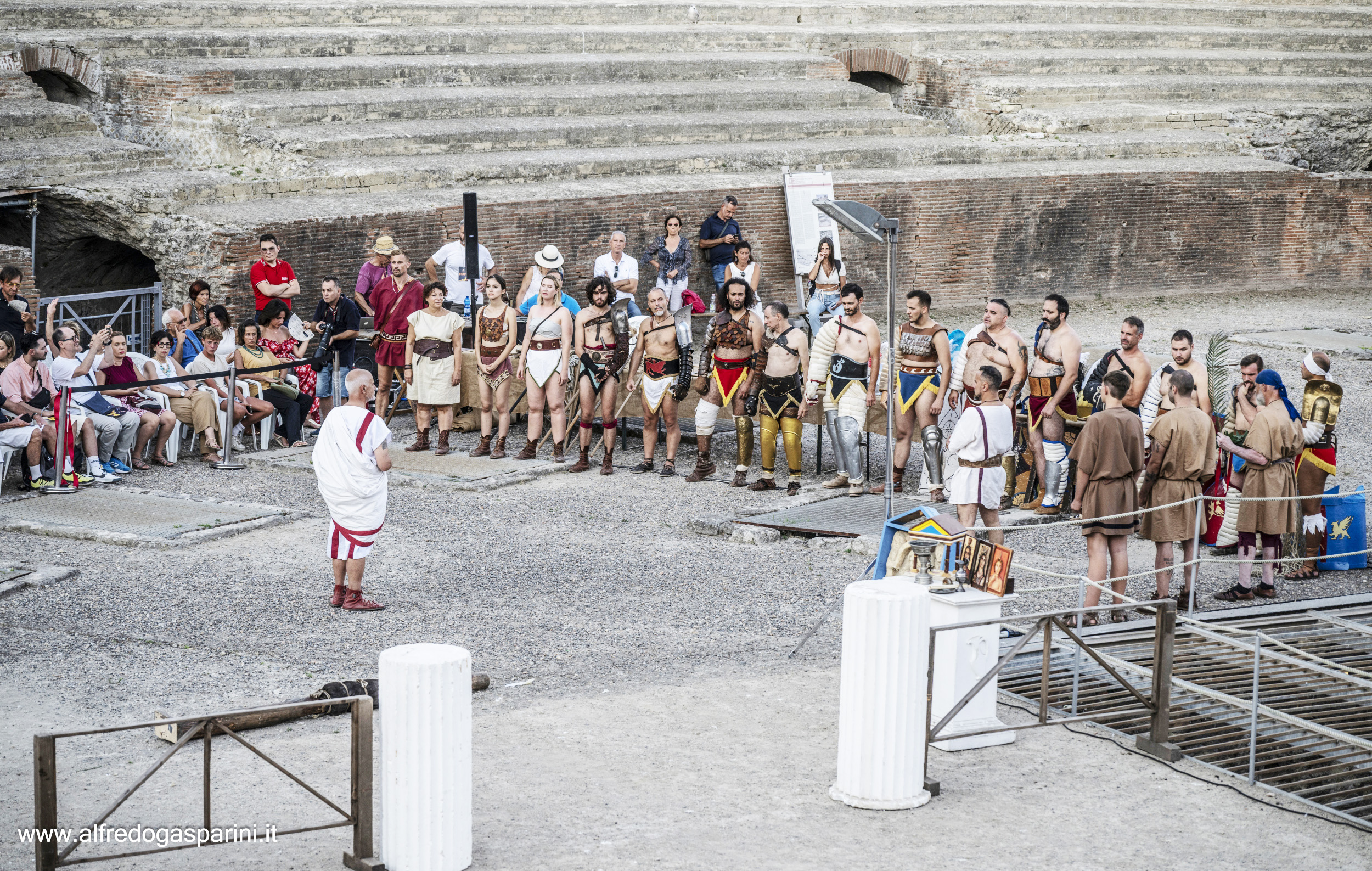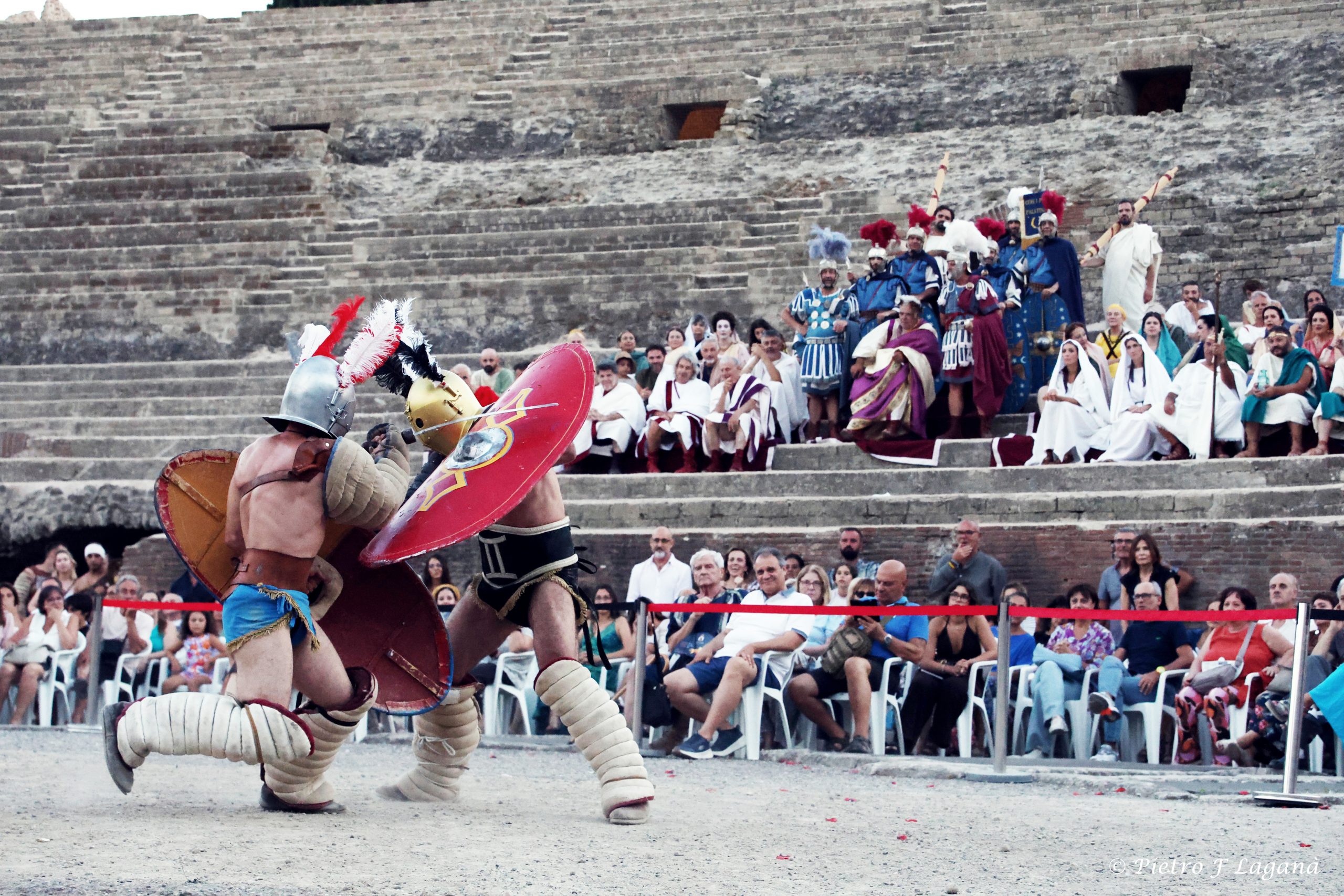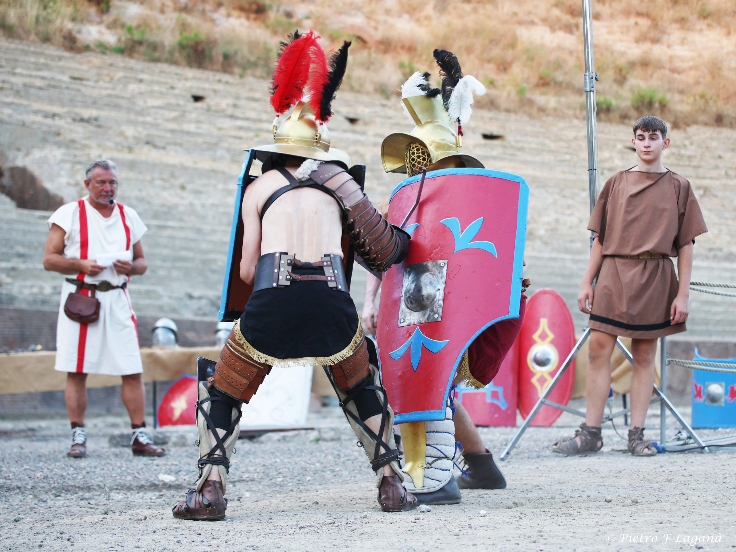 rigorosa e coinvolgente, portando all’interno del grande anfiteatro puteolano il racconto visivo della gladiatura antica: fonti letterarie, epigrafiche e iconografiche, unite a lunghi anni di archeologia sperimentale, hanno permesso di mostrare al pubblico il volto della gladiatura, epurato dalle spettacolarizzioni cinematografiche, e calato nel contesto del diritto romano antico.