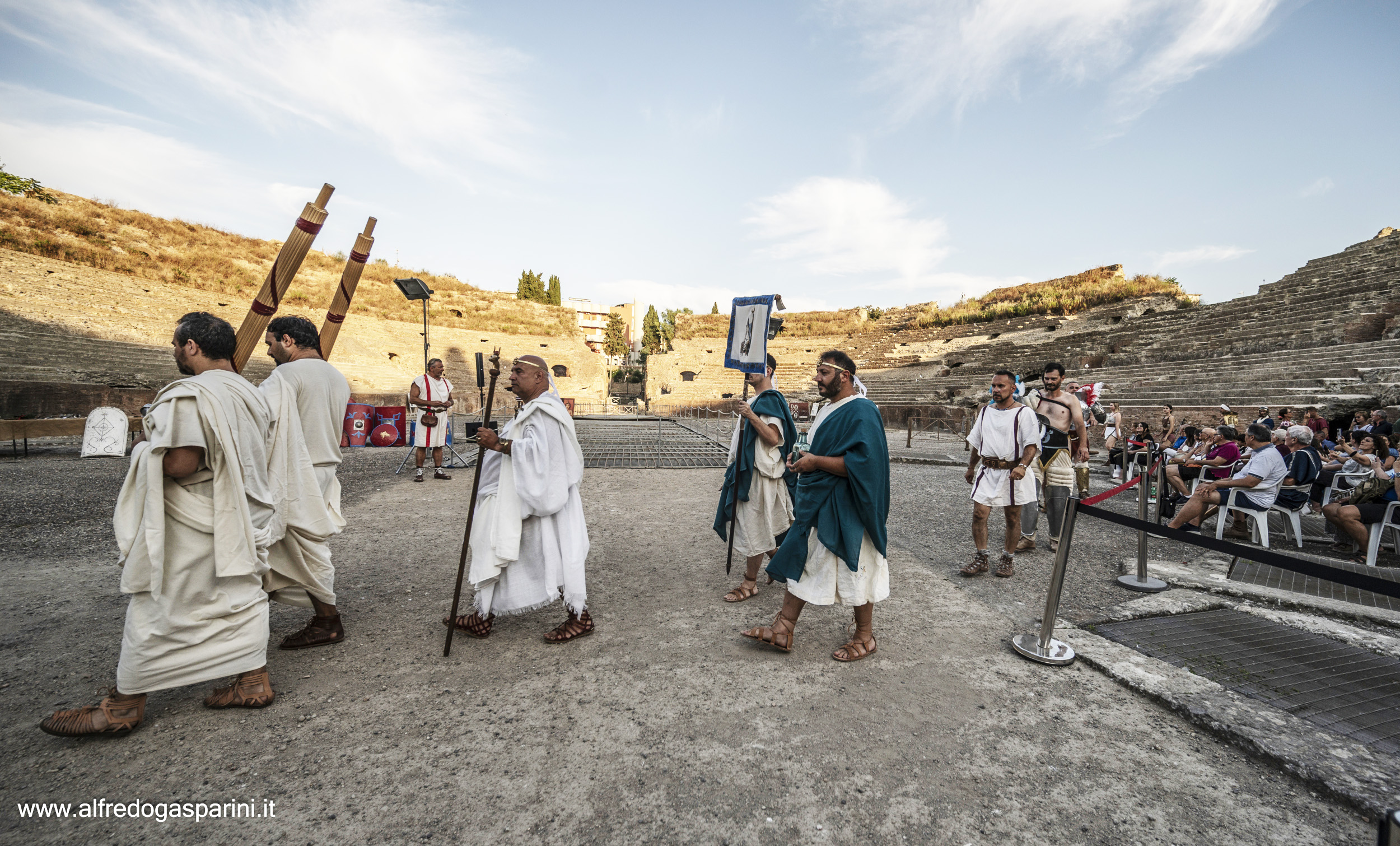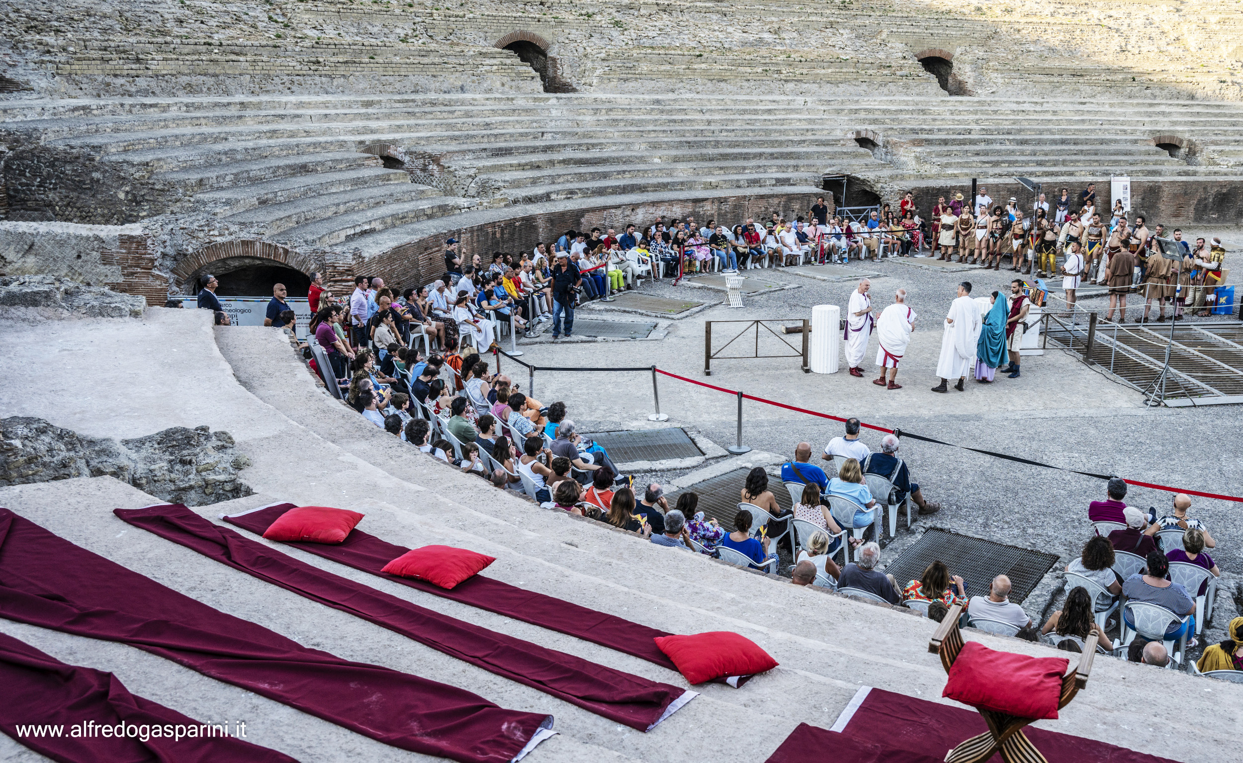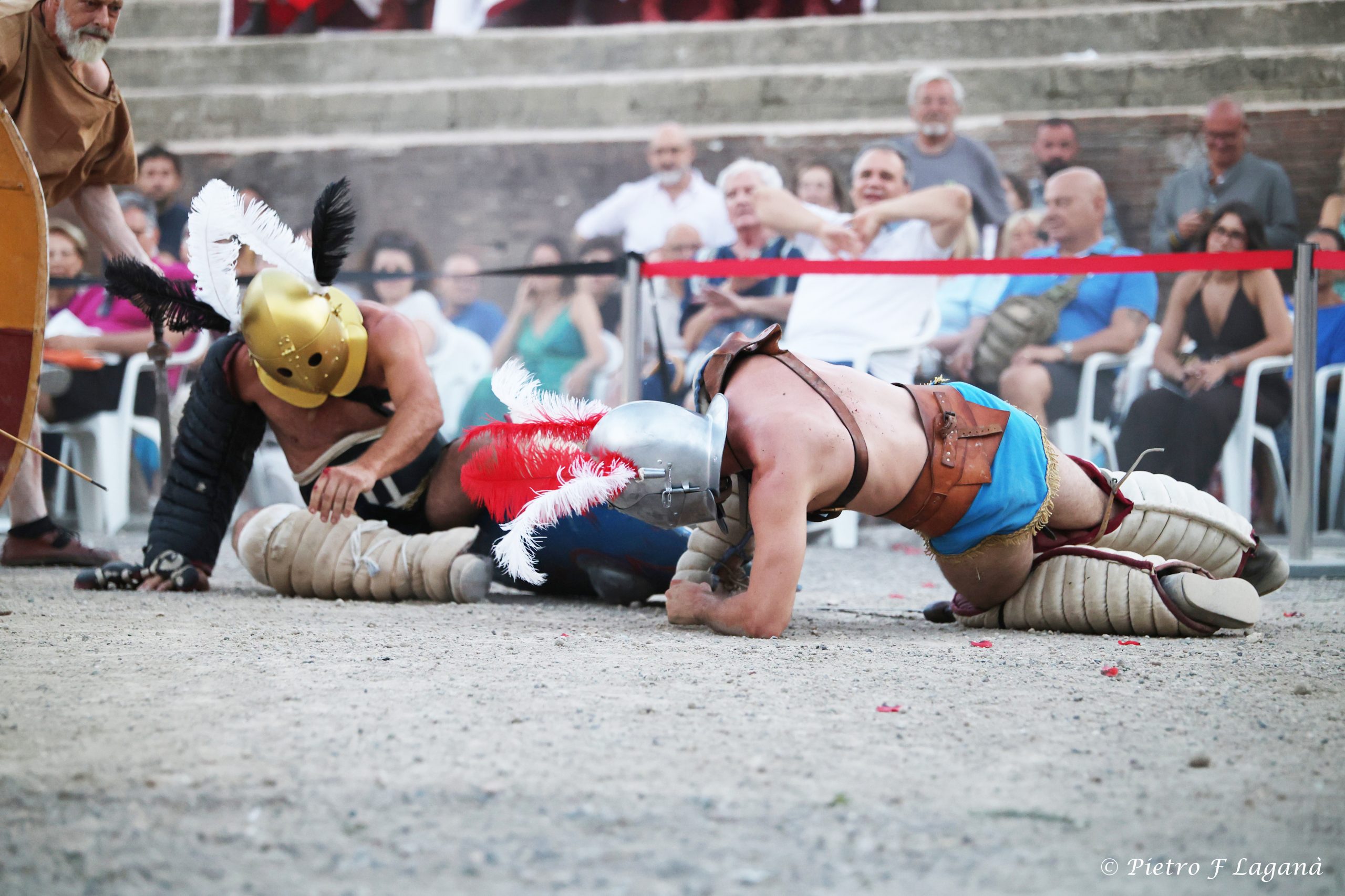 rigorosa e coinvolgente, portando all’interno del grande anfiteatro puteolano il racconto visivo della gladiatura antica: fonti letterarie, epigrafiche e iconografiche, unite a lunghi anni di archeologia sperimentale, hanno permesso di mostrare al pubblico il volto della gladiatura, epurato dalle spettacolarizzioni cinematografiche, e calato nel contesto del diritto romano antico.