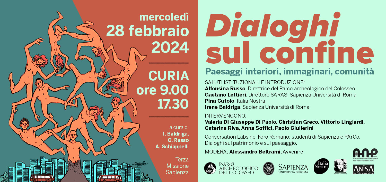12.00 – 13.30 “Conversation Labs”, a cura del Parco archeologico del Colosseo, con la collaborazione di docenti e studenti di Sapienza Università di Roma (percorsi di visita sul paesaggio di confine):