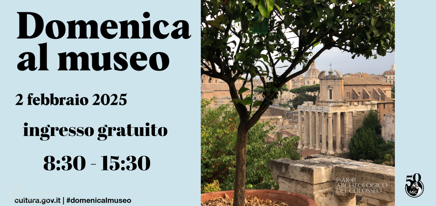 DOMENICA 2 febbraio 2025 il Parco archeologico del Colosseo aderisce alla domenicalmuseo con le seguenti opzioni di visita: