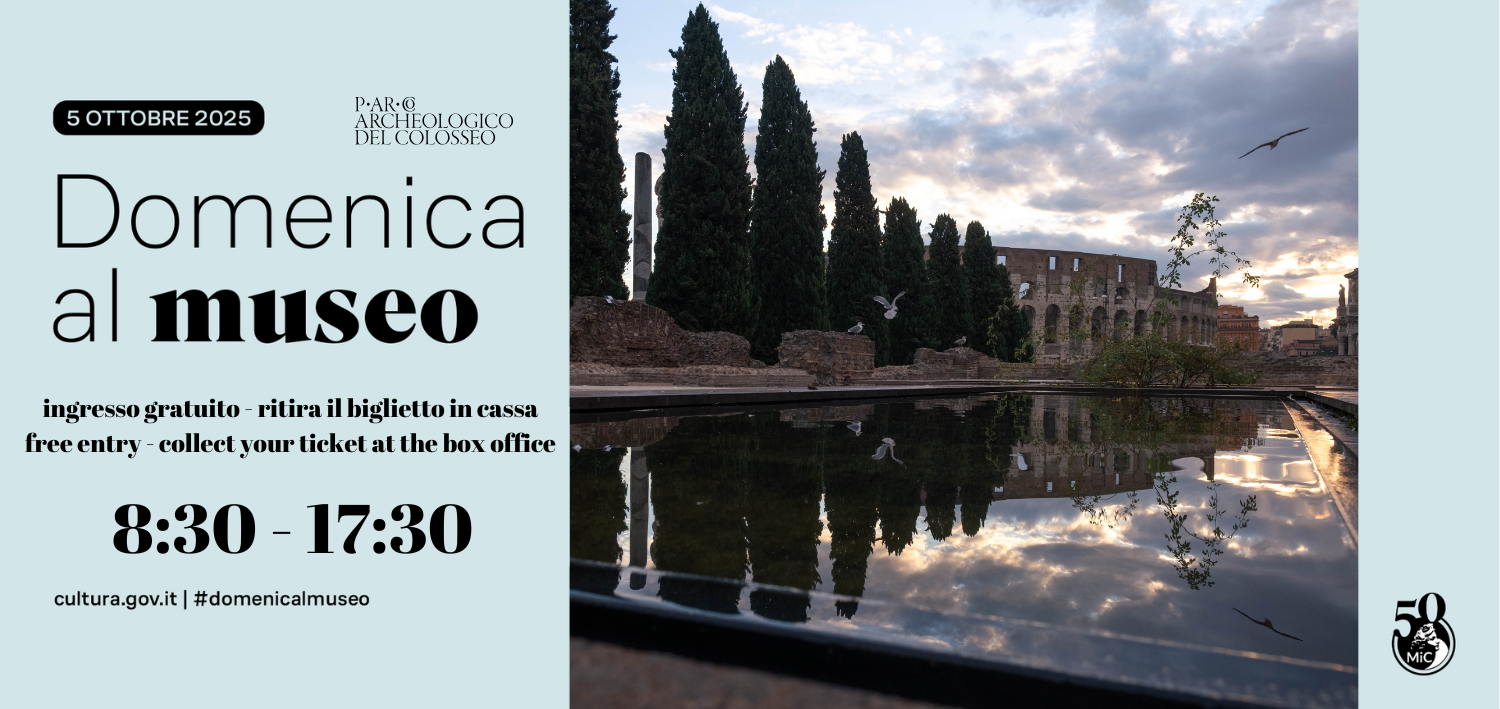 DOMENICA 5 ottobre 2025 il Parco archeologico del Colosseo aderisce alla domenicalmuseo con le seguenti opzioni di visita: