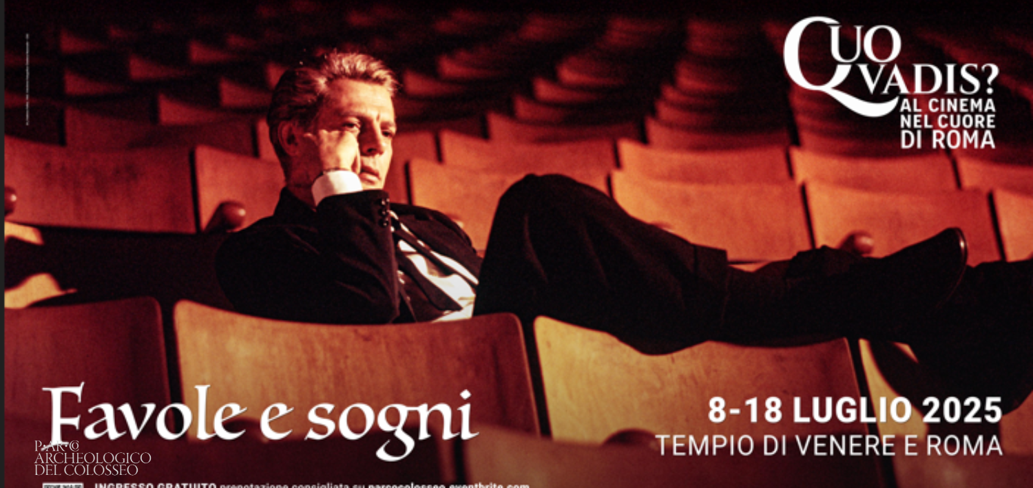 «Nel cuore della Roma eterna, il Tempio di Venere e Roma si conferma un luogo di memoria, ma anche uno spazio vivo, aperto alla sperimentazione e al dialogo interculturale. Dopo la musica, che ha animato le serate di giugno, è la volta del cinema, arti in grado di esplorare temi universali, attraverso linguaggi artistici contemporanei. La rassegna si nutre dell’eredità di due maestri del pensiero e dell’immaginario del Novecento, Federico Fellini e Pier Paolo Pasolini, offrendo al pubblico uno spettacolo unico».