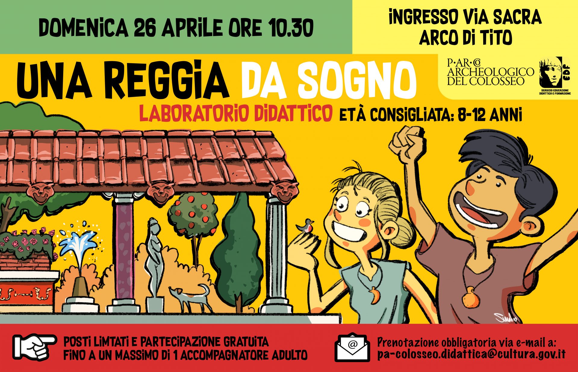 Bambini e bambine di età compresa tra gli 8 e i 12 anni, con famiglie al seguito, sono invitati sul Palatino per allestire la propria ‘reggia da sogno’: attraverso un percorso tra i luoghi più belli del PArCo, scopriranno le meraviglie del Palazzo dell’Imperatore e avranno modo di fare le proprie scelte da arredatori, per creare una reggia ideale. In caso di maltempo tutti i prenotati riceveranno per tempo le comunicazioni su modifiche o annullamento della attività.