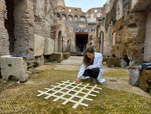 sperimentiamo metodi green e bio-based per il consolidamento dei materiali e per il controllo dei biodeteriogeni come oli essenziali e estratti vegetaliLa sfida che ci poniamo è condurre attività di manutenzione e conservazione non limitando la fruizione del monumento e l’attività di studio e approfondimento.