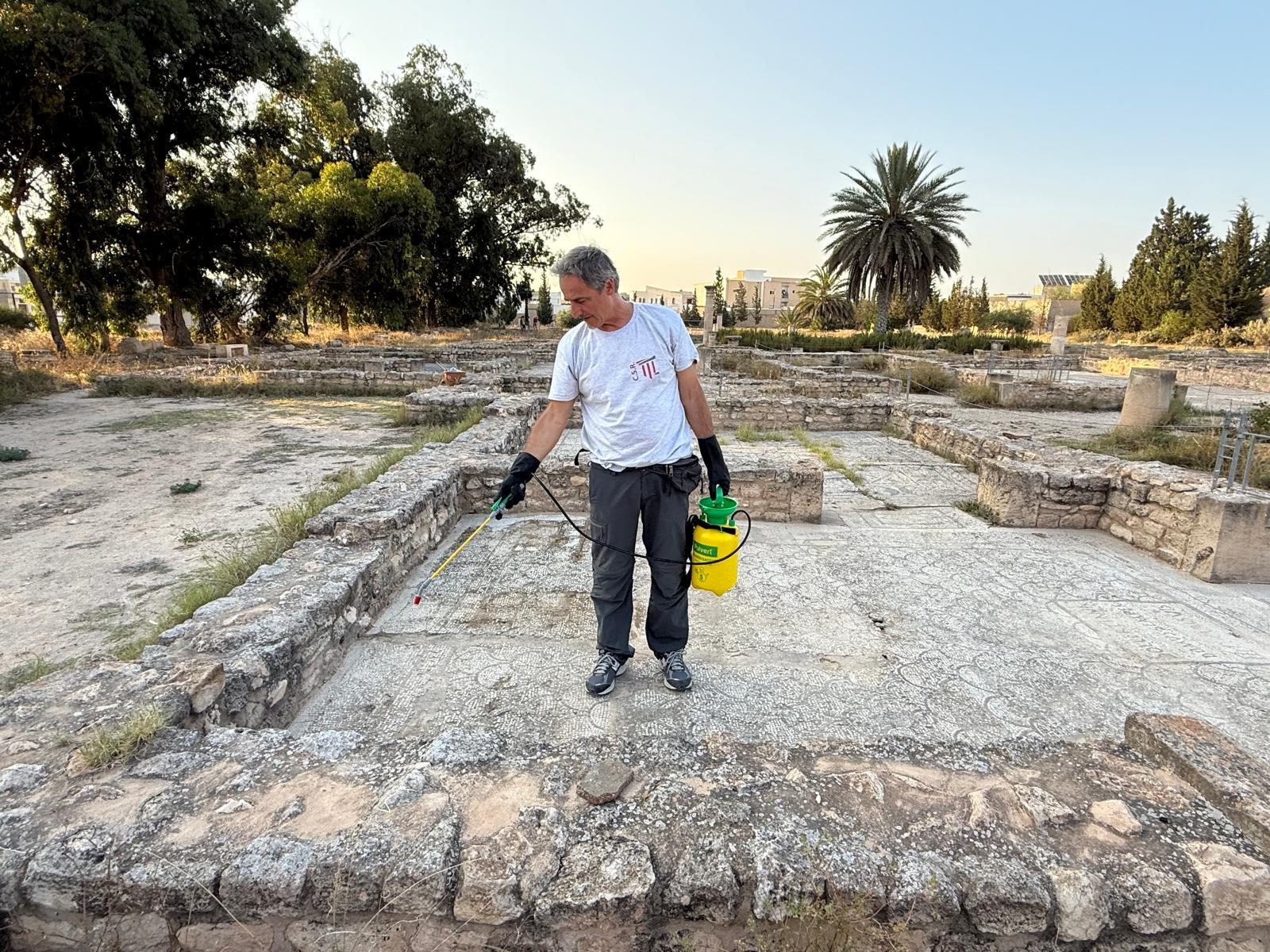 El Jem. Rimozione della vegetazione infestante all’interno degli ambienti con mosaici con applicazione di prodotti biocidi (C.S.R. Restauri di Riccardo Mancinelli)
