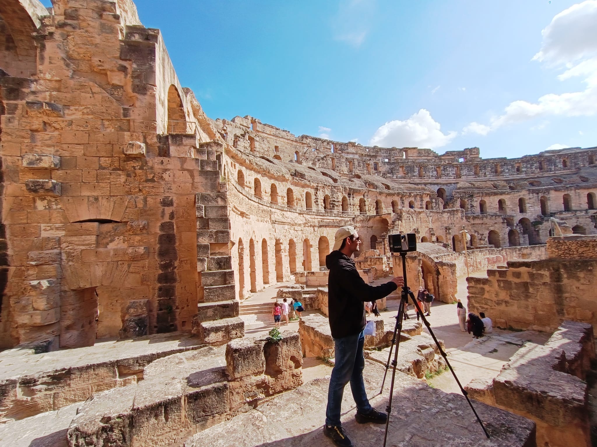 Ad aprile 2025 la missione ha preso avvio, con la fase preliminare di rilievo laser scanner 3D delle aree oggetto di intervento, allo scopo di raccogliere una base documentaria funzionale sia alle progettazioni, sia alla produzione di contenuti video e ricostruzioni utili alla valorizzazione e alla promozione del sito. Le attività di rilievo si sono protratte in situ per una decina di giorni: durante tutto il periodo l’équipe di Pietro Gasparri (CPT Studio), incaricata dal Parco, ha rilevato topograficamente e georeferito tutta l’area archeologica, in grande sinergia con il personale locale ed in particolare con Anis HAJLAOUI, ispettore generale e Rachid HAMDI, archeologo.