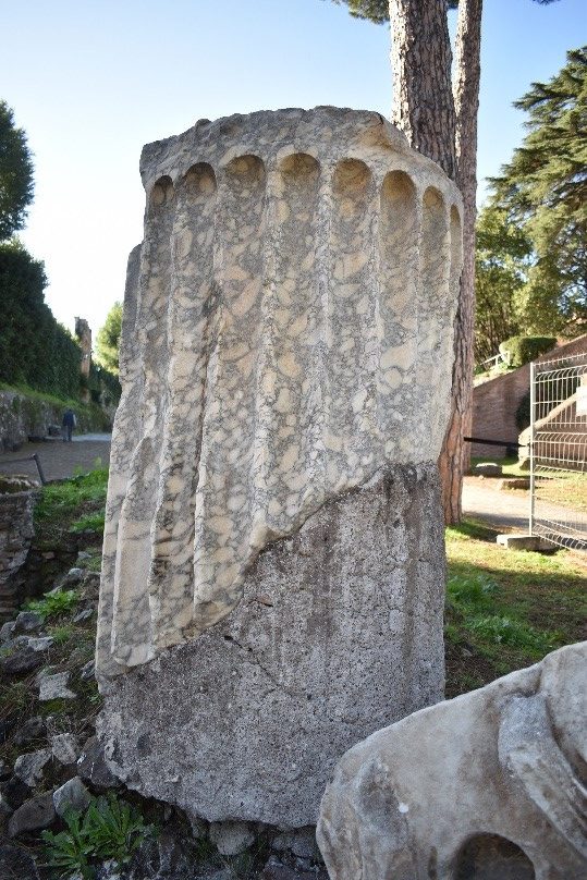 Nell’ambito delle attività di conservazione promosse dal Parco archeologico del Colosseo, è stato sviluppato un progetto condiviso di studio e restauro dedicato ad alcuni frammenti architettonici in marmo provenienti dal Foro romano, confluito in una tesi di diploma presso l’Istituto Centrale per il Restauro (dott. ssa Simona Dichiara, Relatori: Luciana Festa ICR, Angelica Pujia PArCo, PFP1 – ANNO ACCADEMICO 2019/2020). Si tratta di un frammento di colonna scanalata in marmo pavonazzetto e tre frammenti di capitello corinzio in marmo bianco, databili tra il II e il III secolo d.C.